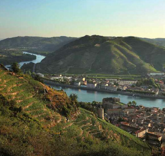 Depuis l’Antiquité, la colline de l’Hermitage est travaillée à la main. Ses pentes abruptes ont été patiemment aménagées en terrasses de pierres sèches, créant un paysage unique où chaque parcelle est précieuse. Reconnue en AOC dès 1937, l’appellation Hermitage est aujourd’hui synonyme de grands vins de garde, recherchés dans le monde entier.